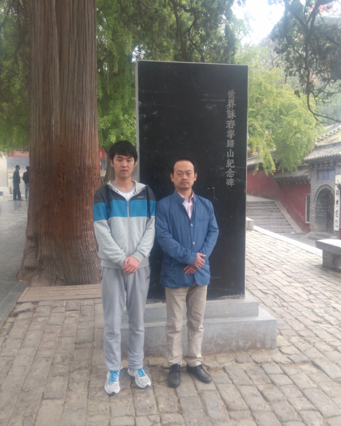 胡新成与徐晨龙在少林寺 咏春归山纪念碑前